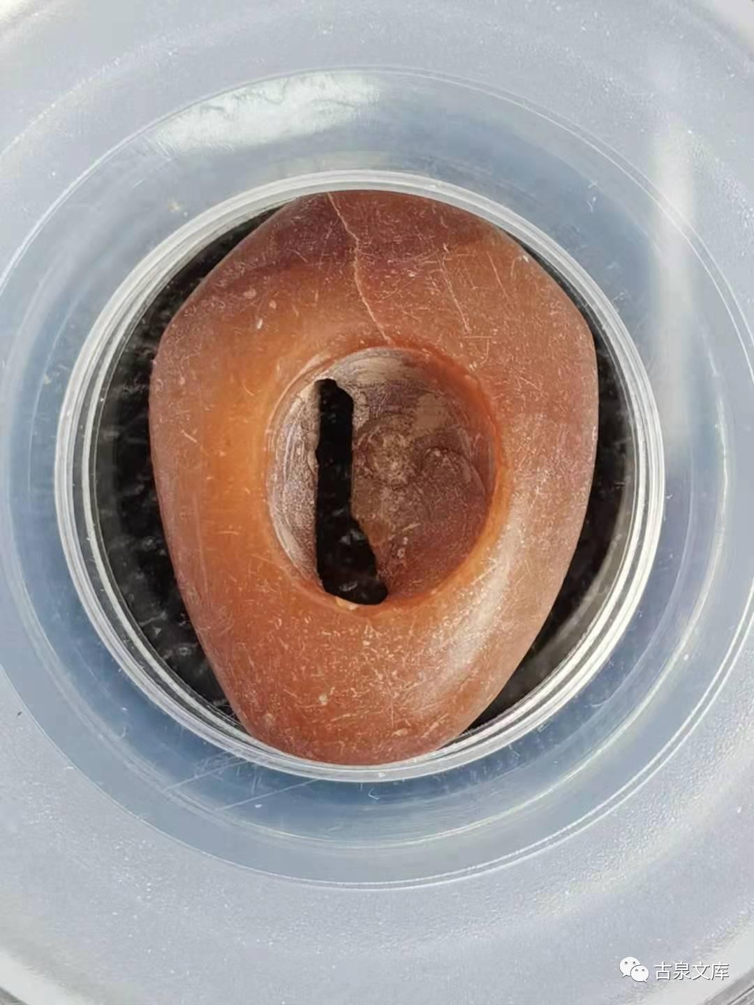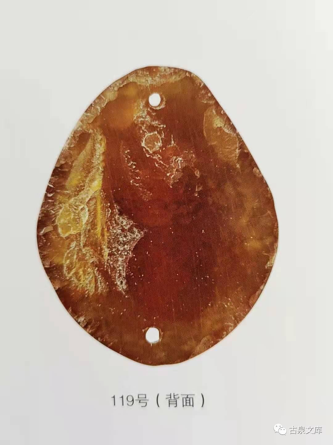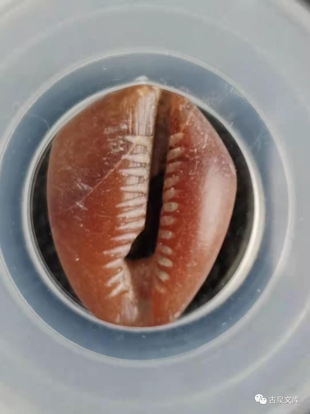 图17、18:玛瑙贝 西周,整体略呈卵圆形,直槽横齿,单穿,21.9*15.2*6.9mm,2.96g(作者孙永行藏品)