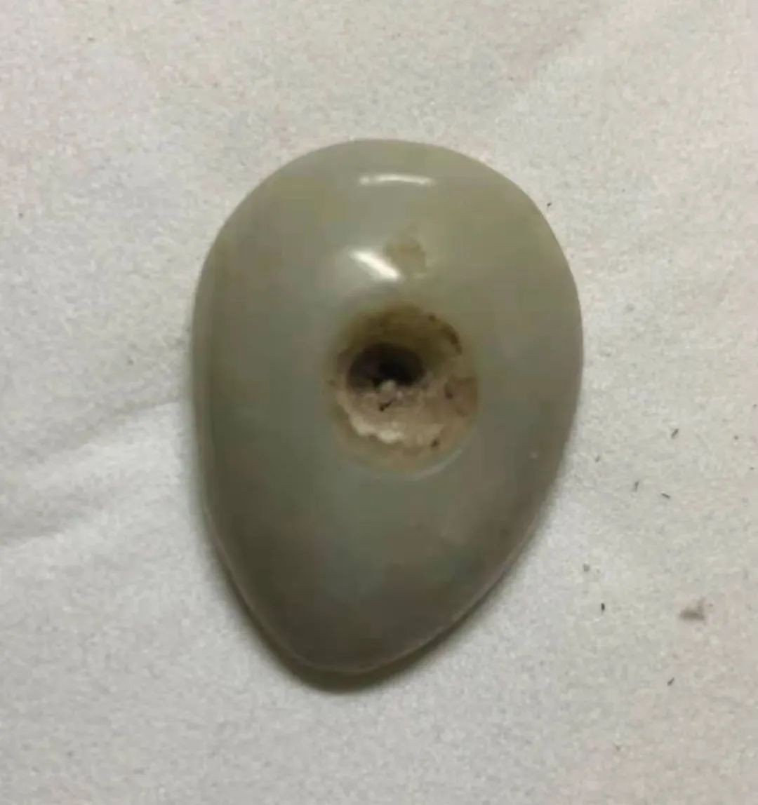 图5、图6:地方软玉贝 商周,整体仿生货贝,背圆孔内大外小,22.1*16.6*7.7mm,3.5g
