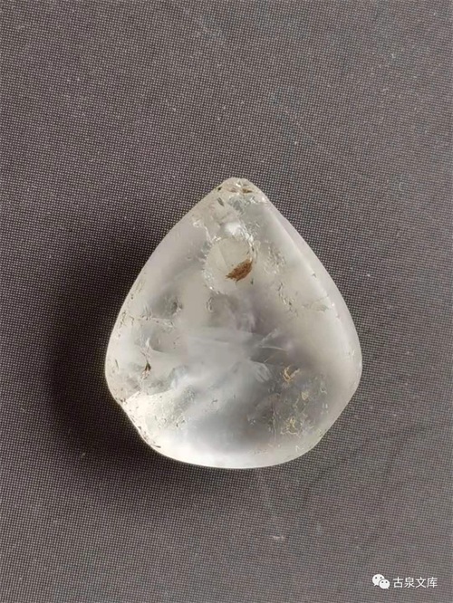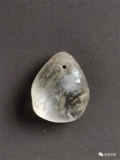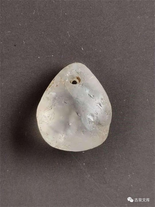 图23、24:水晶贝 商周,整体略呈卵圆形,面鼓背平,单穿, 13.9*11.6*7.6mm,1.49g(所见有的带竖槽)。