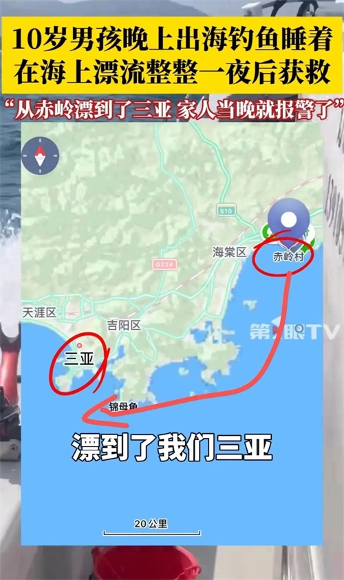 小男孩独自划着小船,在海上漂啊漂,从陵水赤岭村漂到了三亚。这一夜,对他来说,绝对是人生中最漫长、最难忘的一夜。想想看,一个10岁的孩子,独自在海上度过漫漫长夜,这得有多大的心理承受能力!