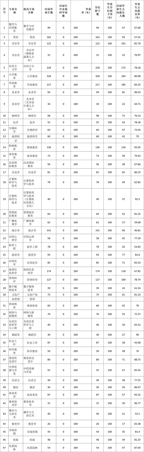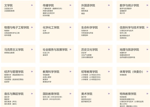 省级一流本科专业建设点:学前教育、小学教育、汉语言文学、广播电视学、英语、化学、数学与应用数学、计算机科学与技术、生物科学、汉语国际教育。
