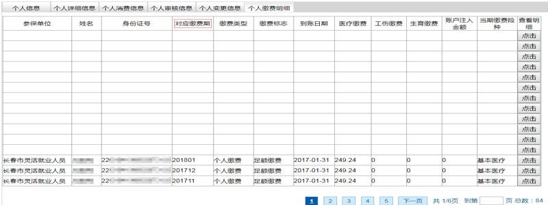 通过注册的用户名和密码登录后,选择“个人医保详细信息”, 点击“个人缴费明细”:
