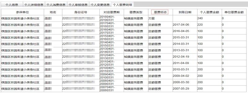 1、如足额缴费,在“缴费标志”中,会显示“足额缴费”字样,并参照最大一期“对应缴费期”作为再次缴费时间。