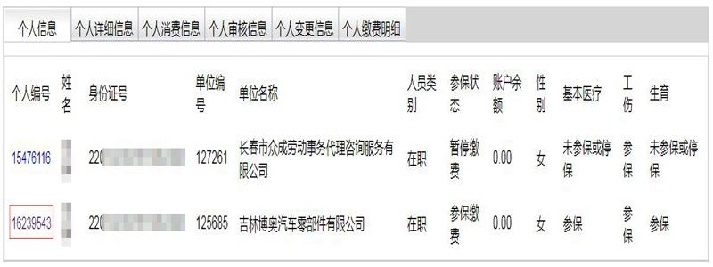 另外,在“个人信息”、“个人详细信息”、“个人变更信息”等模块下,可实现对个人医保编号、参保日期等信息的查询。