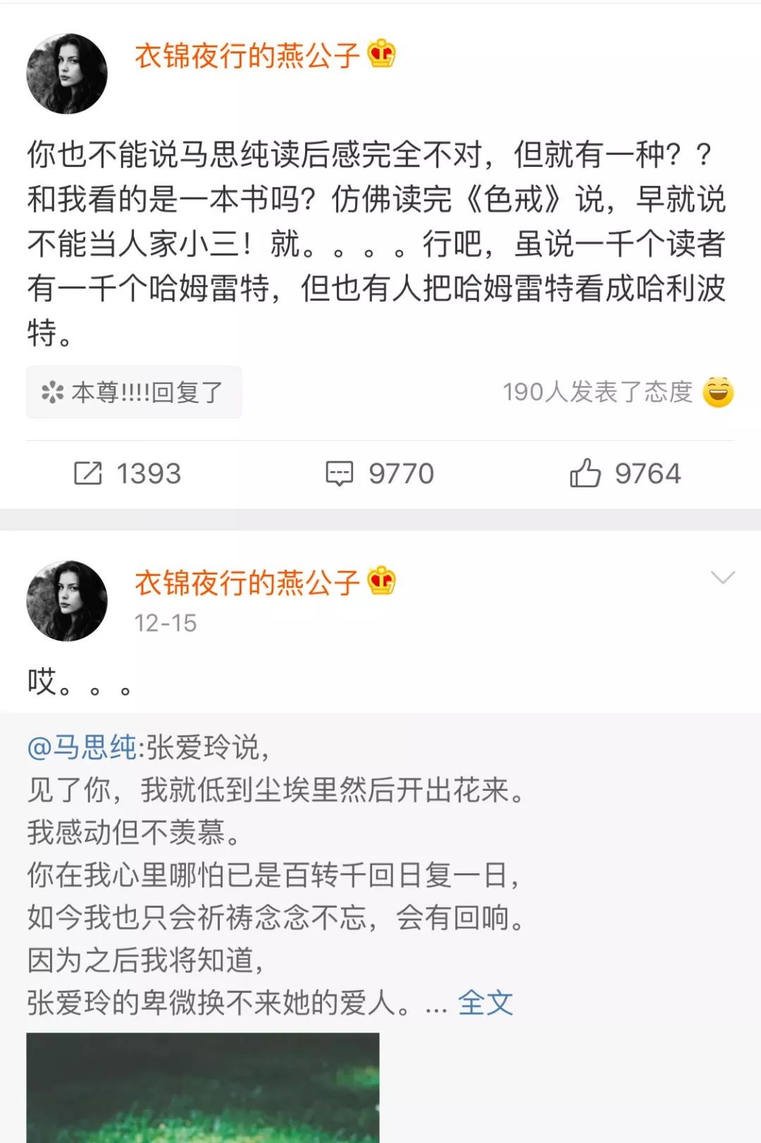 马思纯与燕公子“吵”着来为张爱玲语录正名,值!