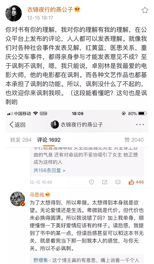一来二往,两人关于“读后感”的讨论也演变成了对于公共事件个人发声的自由度的问题