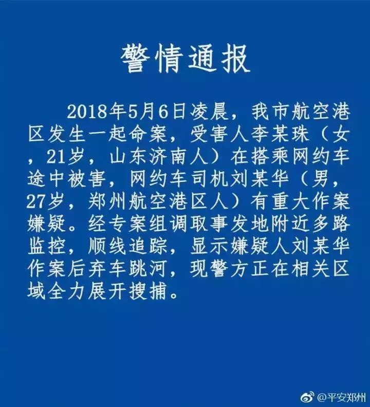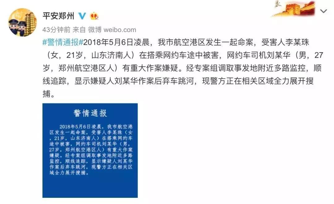 郑州市办案民警对媒体表示,作案人员是一名滴滴司机,身上携有凶器,凶手仍在潜逃中,警方正在抓捕。