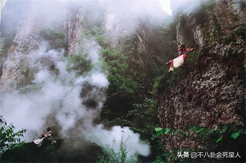 其中最为经典的一幕是曲洋、刘正风合奏《笑傲江湖》一曲时,两位高人身处烟霞弥漫的山间中,这烟雾缭绕的氛围感以及真实的高山背景,令人不禁联想起“高山流水觅知音”的典故,想必正是在如此意境下,才得以称为“笑傲江湖”。