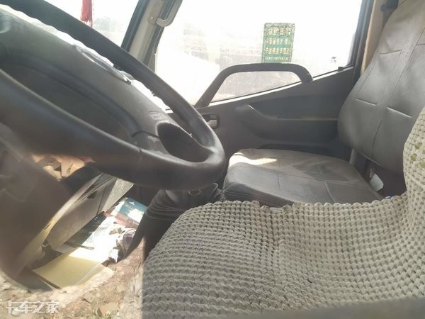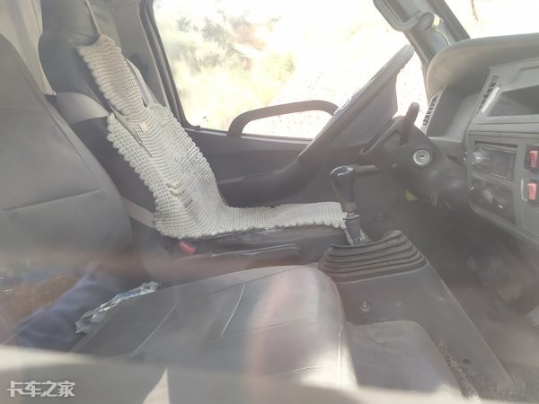 驾驶室可容纳三人乘坐,但是车辆的宽度不是很理想,所以副驾驶的座椅有些局促,中间乘客的乘坐空间显得很紧凑;车主在主驾驶座椅上车主铺设了椅垫,可以减缓夏季长时间乘坐时的闷热感,由于长时间的停放,内饰上已覆盖了一层薄薄的灰。