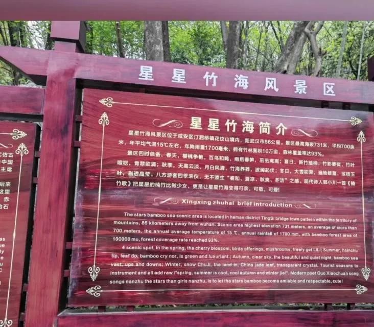 没有目的地,只是按照我们自己的心情独自漫游,想去哪就去哪。我记得当时我们来到了一个山脚下,山上全是竹子。在上山的路口,有一个支起来的木架,上面写着四个大字——星星竹海。