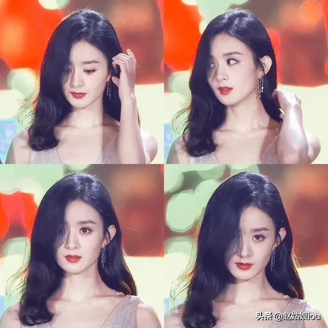 综合:微博之夜赵丽颖表现稳重有优,超出以往红毯表现,尤其因为眼睛发炎而特意用头发遮挡的黑发,增添了妩媚动人之感。