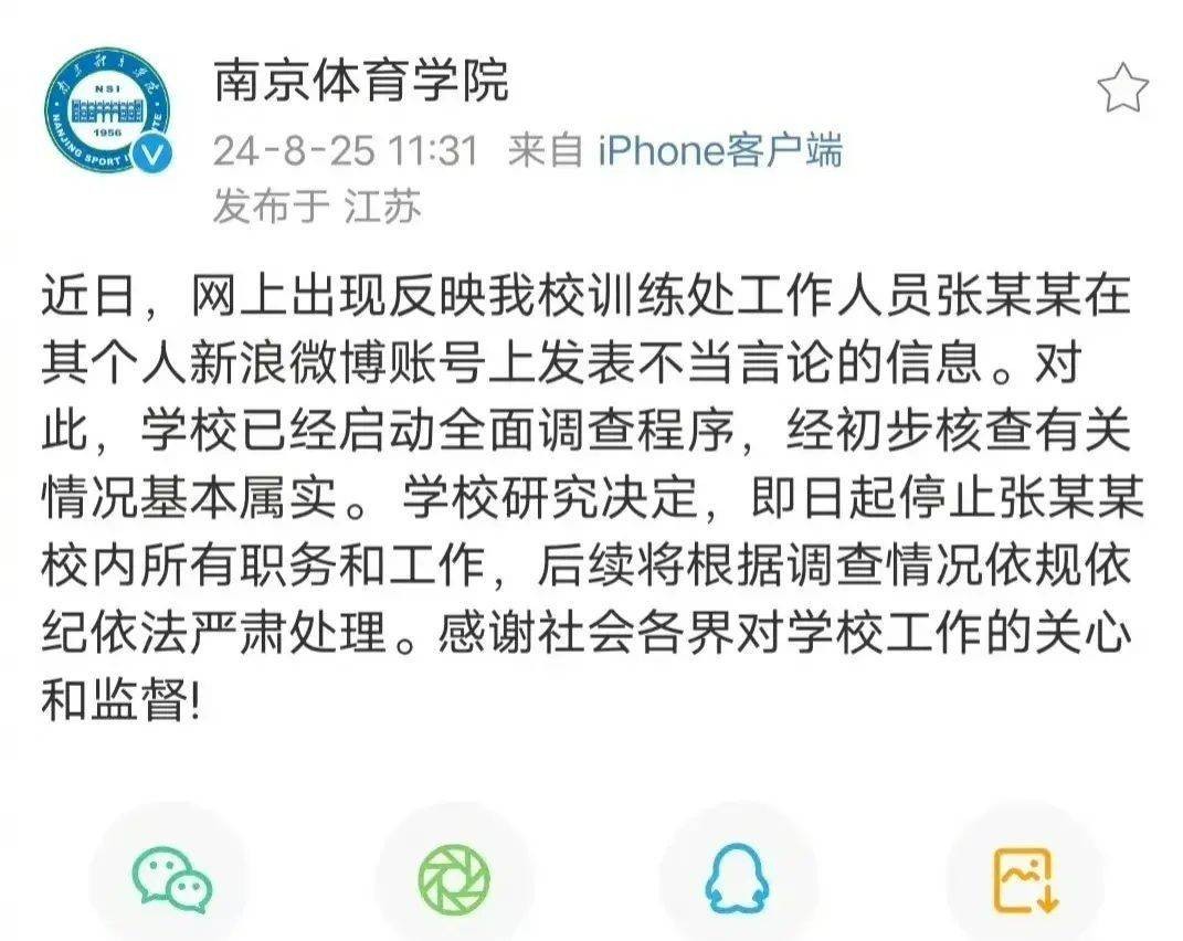 南京体育学院那位"精日"科长张梦鱼的事后续来了。