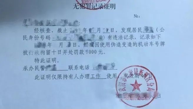 (被行政拘留过的无犯罪记录证明)