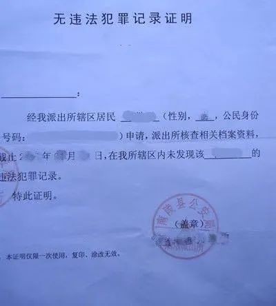 (普通的无违法犯罪记录证明)