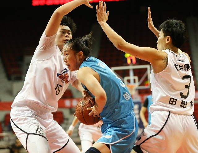 2018年1月WCBA常规赛,上海VS北京。邵婷(中)在篮下进攻。新华社记者丁汀摄