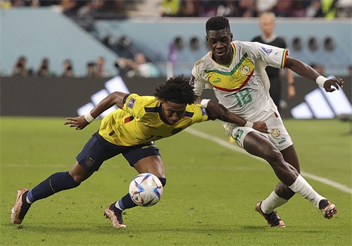 新华社照片,多哈,2022年11月29日 (卡塔尔世界杯)足球——A组:厄瓜多尔对阵塞内加尔 11月29日,厄瓜多尔队球员安吉洛·普雷西亚多(左)与塞内加尔队球员伊斯梅拉·萨尔在比赛中拼抢。 当日,在卡塔尔多哈哈里发国际体育场进行的2022卡塔尔世界杯足球赛A组比赛中,厄瓜多尔队对阵塞内加尔队。 新华社记者 王东震 摄
