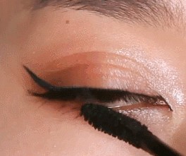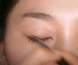画法3:在双色眼影前后叠加的基础上,再选取一个最深色眼影稍微的晕染在眼尾处即可,也要注意晕染自然哦~