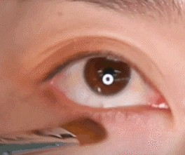 接下来,就正式开始画眼影了,用赤茶色眼影大面积的晕染上眼皮,双眼皮褶皱内及眼尾加深晕染~