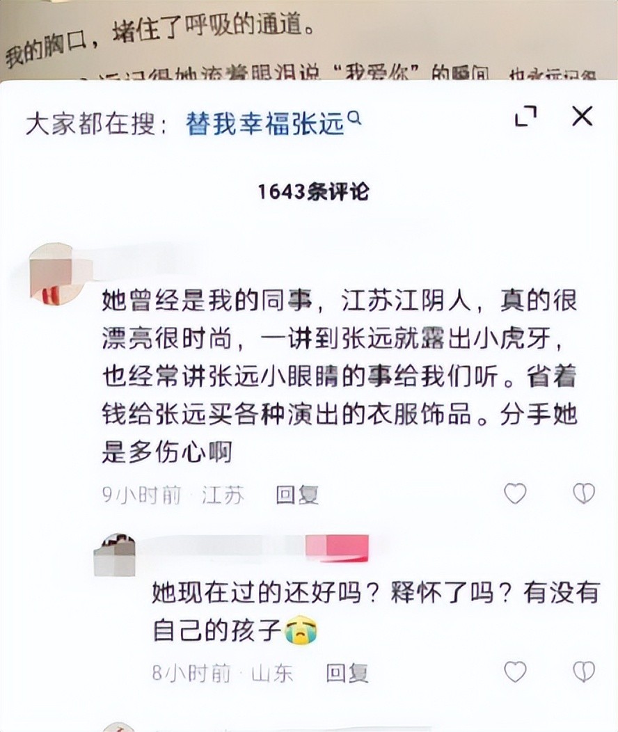 后来有网友留言说:自己曾经和张远的初恋是同事,本人真的很漂亮时尚,一见到张远就会露出可爱的小虎牙,经常给他们讲张远小眼睛的故事,省着钱都拿去给张远买各种演出的衣服和饰品了.....