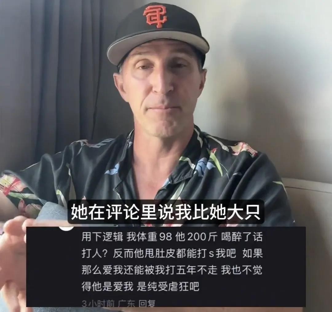 真惨!美国男子称中国妻子控制欲强、酗酒后打他?网友:这大块头
