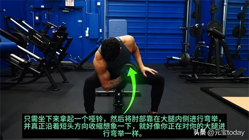 这个动作要求你将肘部靠在大腿内侧进行弯举,并沿着短头的自然路径进行运动。通过这种方式,你可以将训练的重点放在短头上,从而增强它的力量和形态。