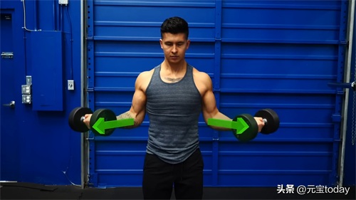 比如,如果你想加肱二头肌的外侧部分或长头,那么可以尝试在肩胛平面上进行弯举。
