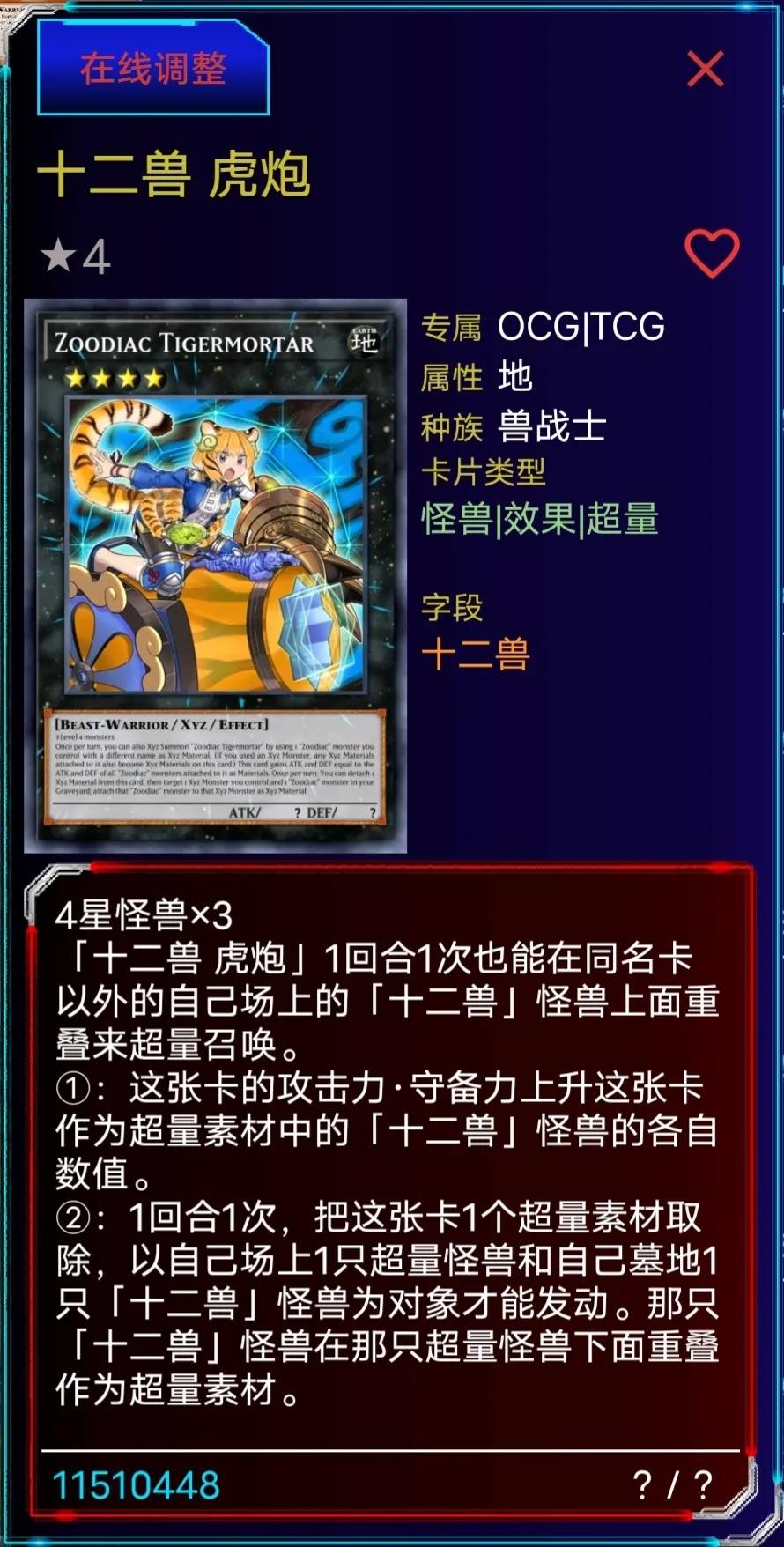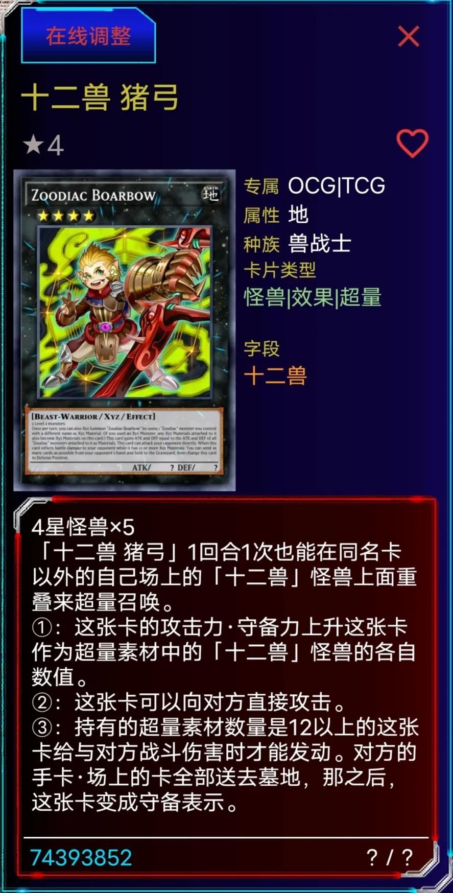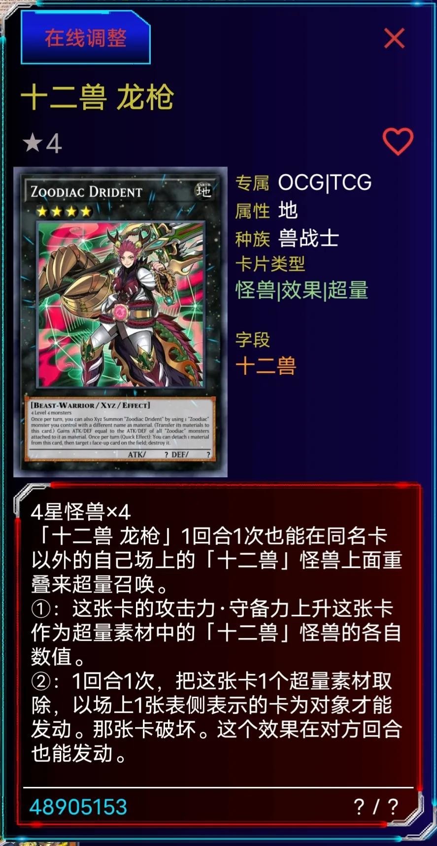 十二兽,是一个令所有游戏王玩家闻风丧胆的名字,这是一个全家假卡,写作超量读作连接的变态超主流卡组,如今在本家三张卡(十二兽 牛犄,十二兽 鼠骑,十二兽的会局)全部被禁止,十二兽 龙枪限一的环境下,十二兽仍然具有一战之力的卡组。