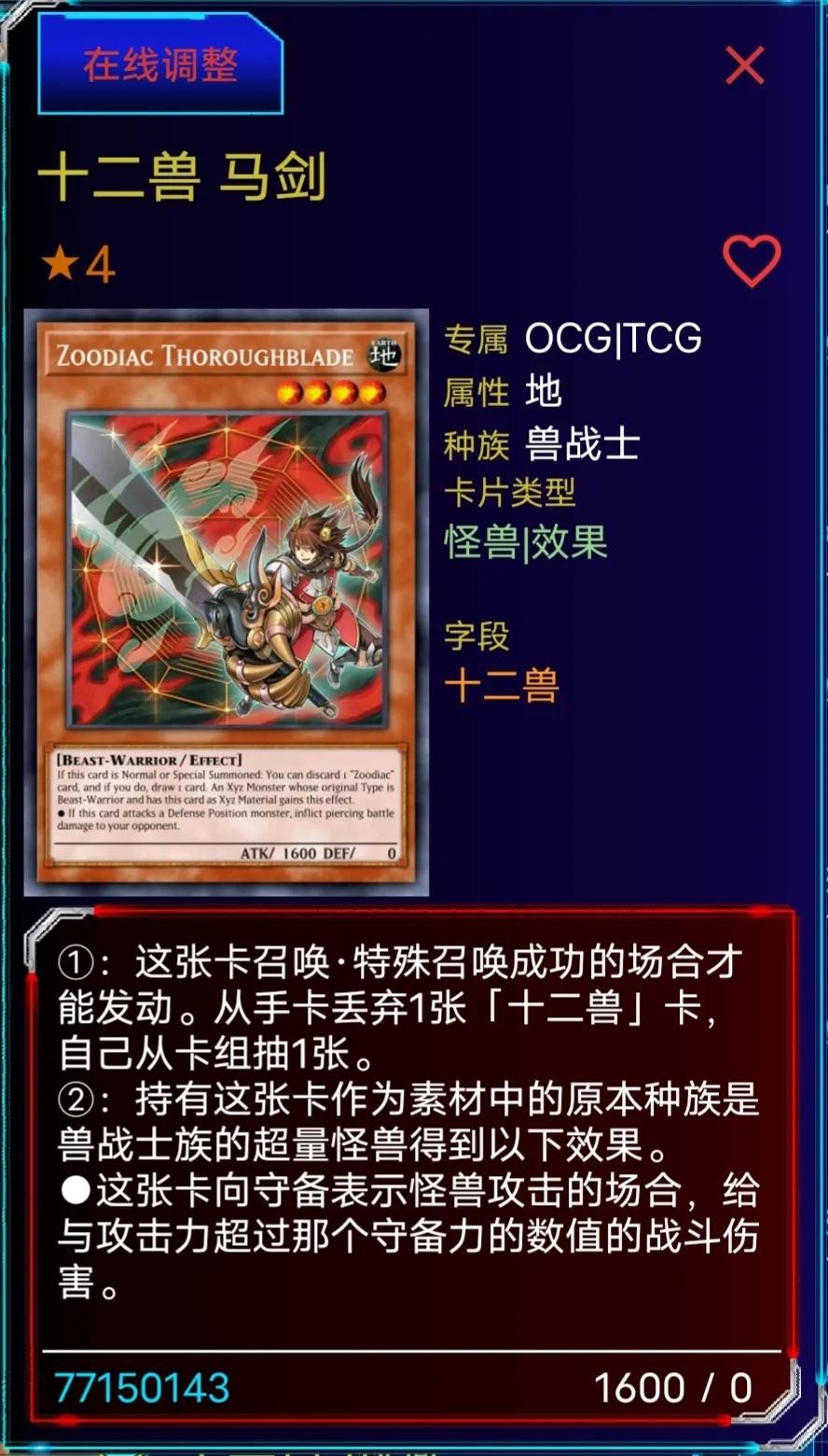 马剑,SR卡,略贵本家重要启动点,配合羊冲可以两卡做出未来龙皇或者无限启动 百万吨百臂飓风,不过在铁兽的卡组中,十二兽主要还是当做链接素材,所以下二即可。