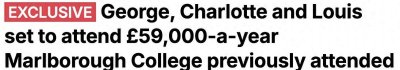 - 威廉王子的三个孩子全部就读马尔堡学院,曾是凯特王妃的母校