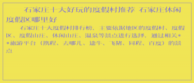 - 石家庄十大好玩的度假村推荐 石家庄休闲度假区哪里好 石家庄十大度假村排行榜,主要依据地区的度假村、度假区、度假山庄、休闲山庄、温泉等景点进行选择,通过相关**旅游平台(...